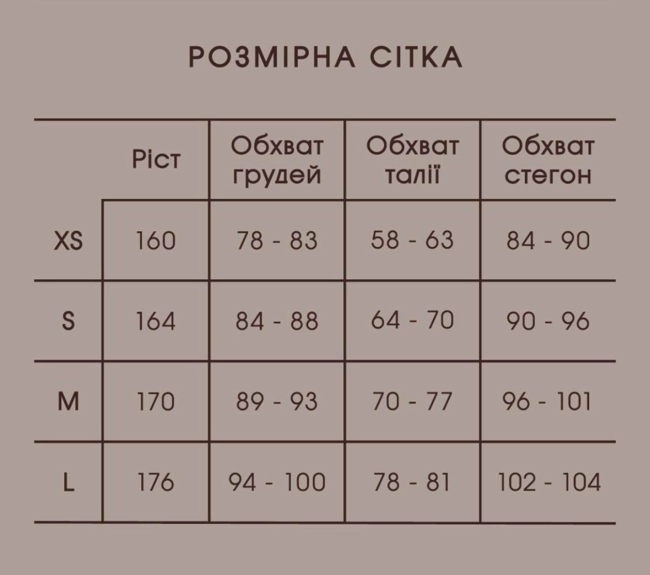 Таблиця розмірів;